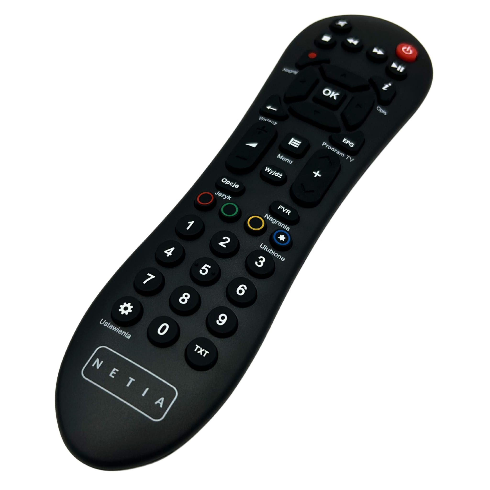 Pilot umożliwia wygodne sterowanie dekoderem Netia Evo Box Dialog. Obsługuje wszystkie podstawowe funkcje, takie jak zmiana kanałów, EPG, menu, regulacja głośności oraz dostęp do ustawień dekodera. Solidna konstrukcja i wytrzymałe przyciski zapewniają komfort użytkowania i długą żywotność urządzenia.